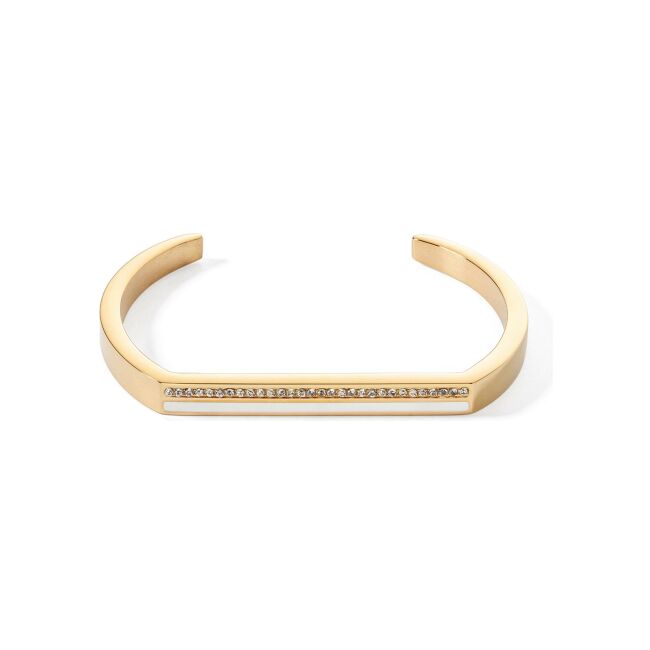 Bracelet Coeur de Lion Cuff Square Stripes en acier doré et cristaux, taille 16cm