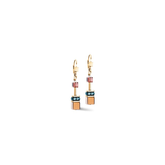 GeoCUBE Boucles d'oreilles Coeur de Lion GeoCUBE Iconic Precious en acier doré, acier, amazonite, cristaux Swarovski et strass